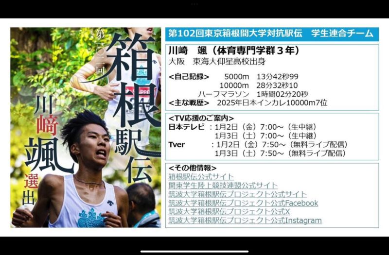 お正月2, 3日の第102回箱根駅伝で、学連選抜チームで筑波大学の川﨑颯選手が玉名市のロゴ入りユニフォームで箱根の1区を走る予定です!(当日のエントリー変更がある可能性もあります)